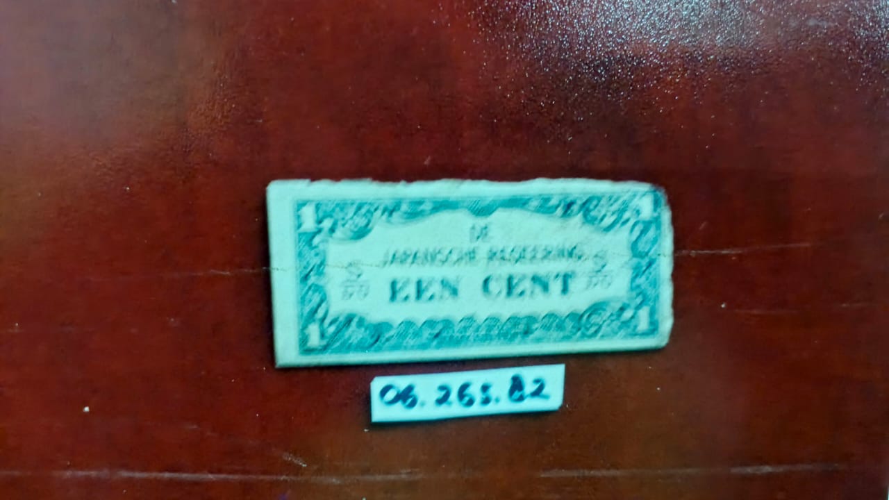 terbuat dari bahan kertas, sisi muka harga dan nama otoritas, sisi belakang terdapat angka 1, percetakan Djakarta Insatsu Kodja No.Seri s/Du. Sumber acuan katalog uang kertas Indonesia 1782-1996, penerbit Yayasan Tridaya Warga Kejaksaan R.I 1996