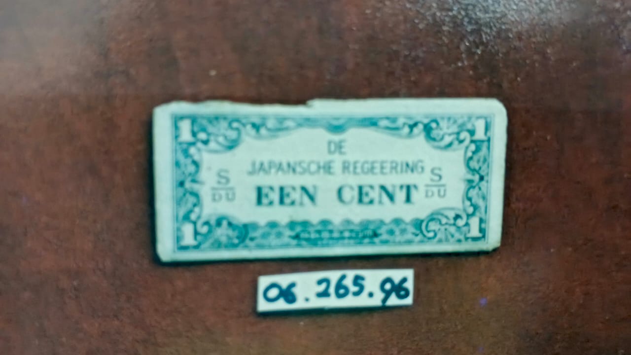 terbuat dari bahan kertas, sisi muka harga dan nama otoritas, sisi belakang terdapat angka 1, percetakan Djakarta Insatsu Kodja No.Seri s/Du. Sumber acuan katalog uang kertas Indonesia 1782-1996, penerbit Yayasan Tridaya Warga Kejaksaan R.I 1996