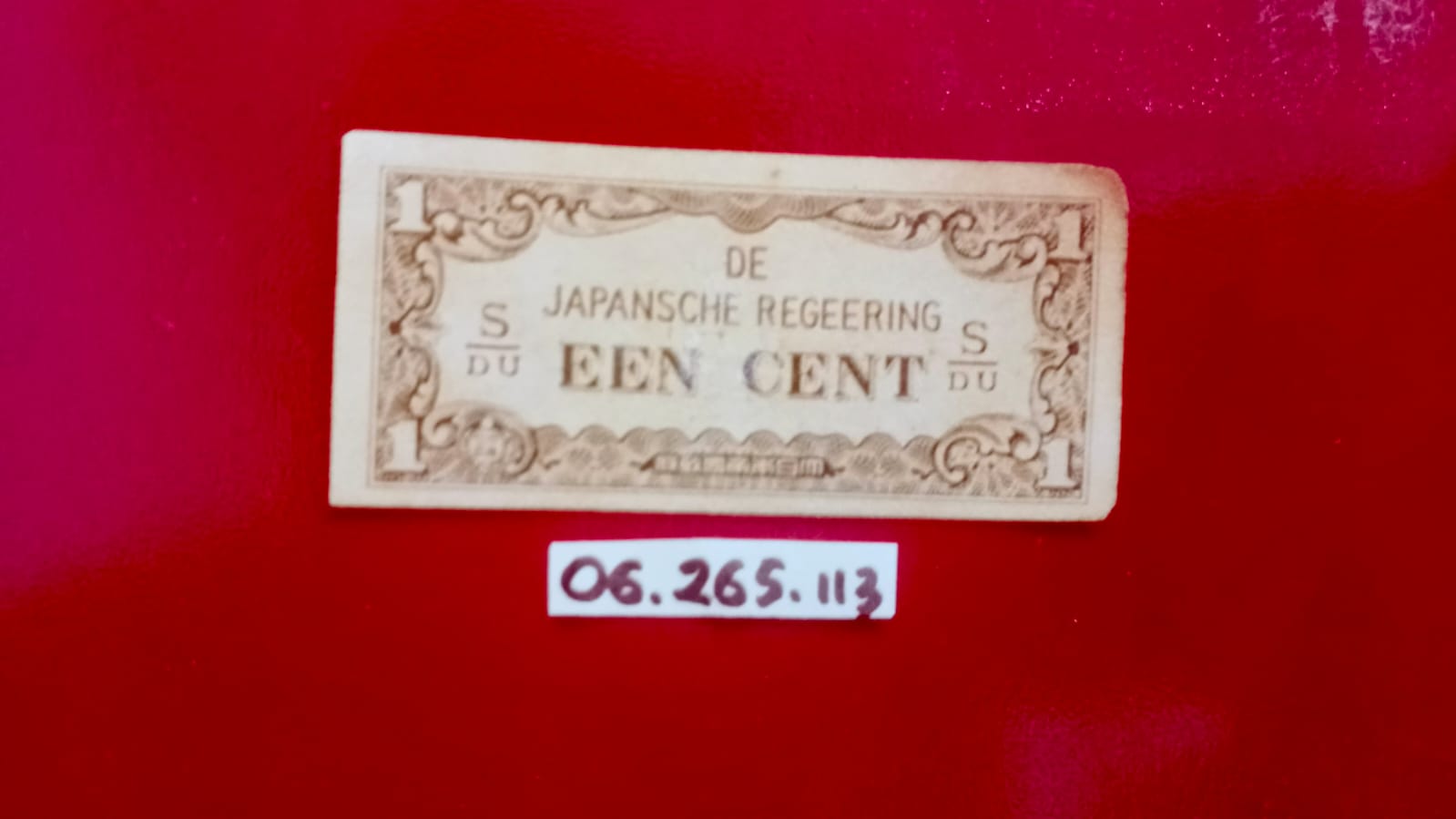 terbuat dari bahan kertas, sisi muka harga dan nama otoritas, sisi belakang terdapat angka 1, percetakan Djakarta Insatsu Kodja No.Seri s/Du. Sumber acuan katalog uang kertas Indonesia 1782-1996, penerbit Yayasan Tridaya Warga Kejaksaan R.I 1996