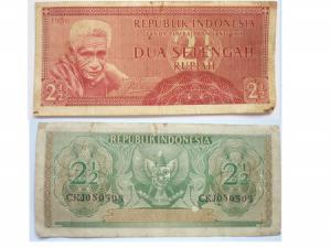 Bahan dibuat dari kertas, berbentuk empat persegi panjang. Warna dasar pada sisi depan merah dan putih serta terdapat potret manusia suku Irian. Sedangkan di sebelah kanan terdapat tulisan REPUBLIK INDONESIA TANDA PEMBAYARAN YANG SAH DUA SETENGAH RUPIAH dan berlatar belakang angka 2½. Pada sisi belakang warna dasar hijau, di sebelah kiri dan kanan terdapat sebuah bingkai yang berisi angka 2 ½ . Pada bagian tengah terdapat lambang burung Garuda Pancasila, tulisan Bank Indonesia dan peraturan keuangan. Mata uang ini ditanda tangani oleh Menteri Keuangan dan terdapat nomor seri CKJ 080503.