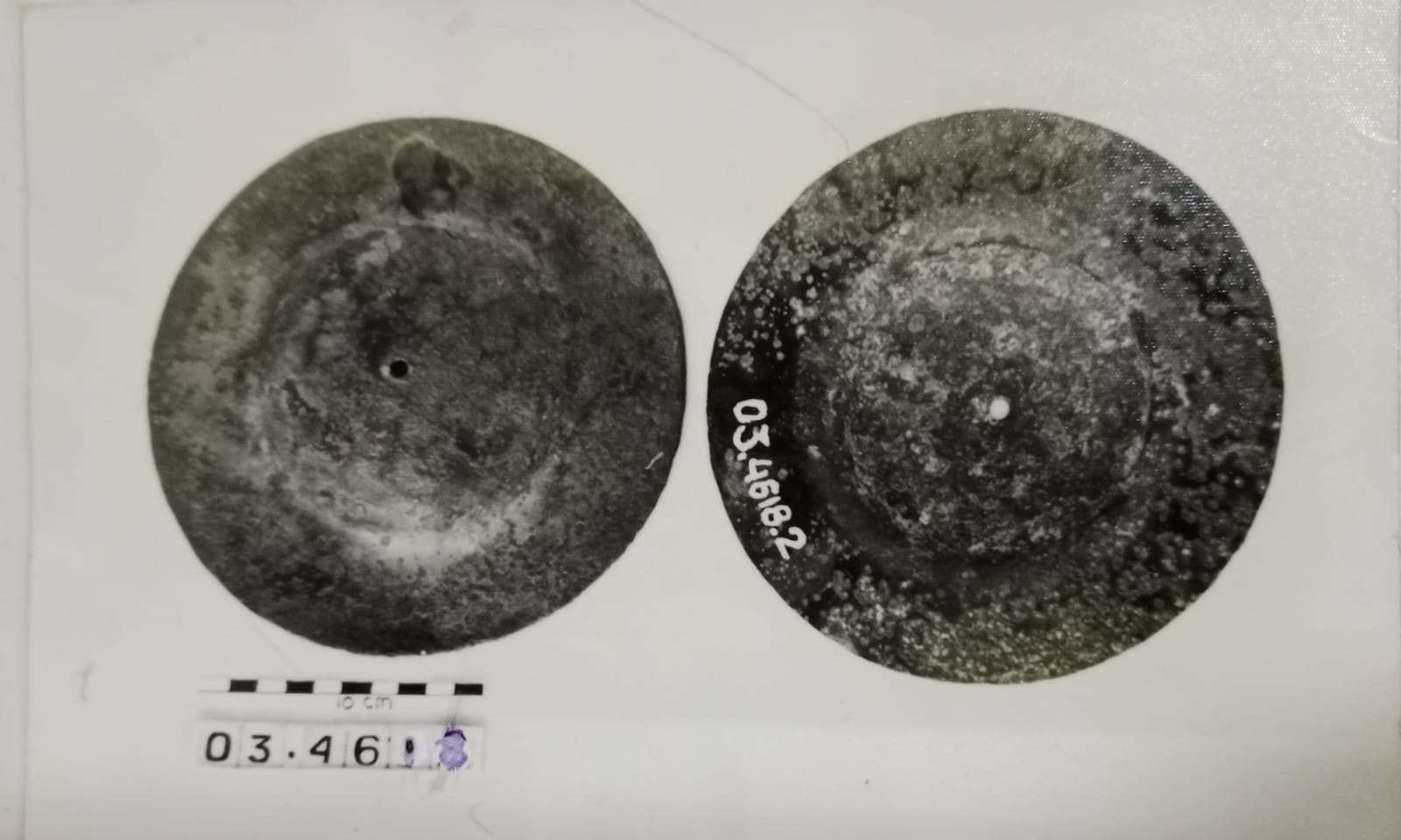 Uang logam warna abu-abu, ada gambar burung garuda dan tulisan Arab dan Indonesia.