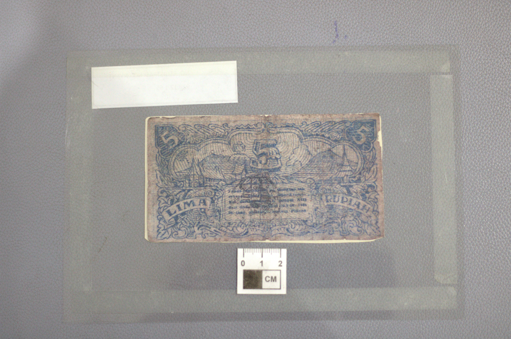 Mata uang ini terbuat dari bahan dasar kuningan berwana kuning, berhuruf VOC dan bermotif polos. Pada sisi lain terdapat lambang kerajaan Belanda. Berfungsi dan berguna sebagai alat tukar