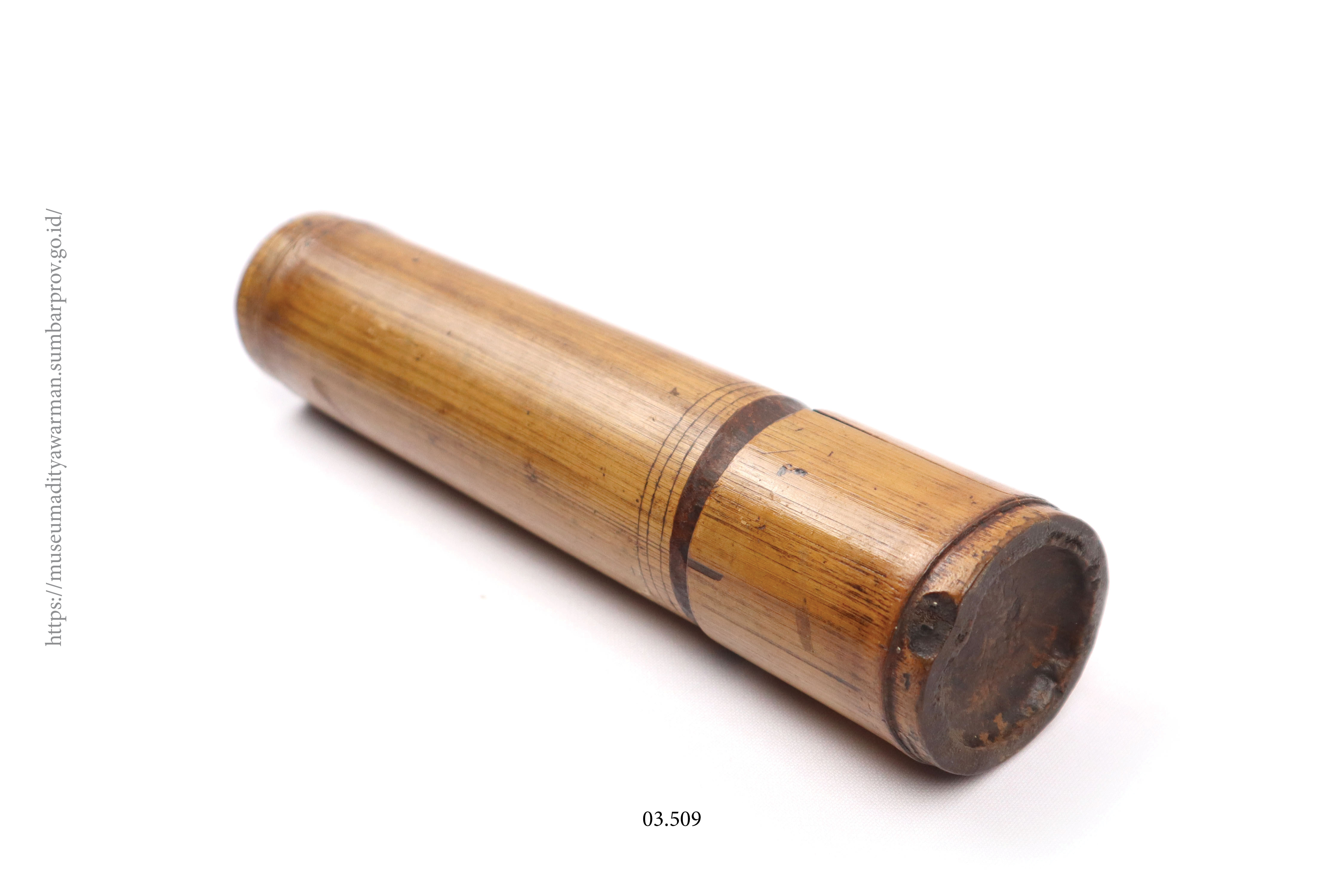 Meja berbahan kayu jati dan berwarna coklat tua. Permukaan meja berbentuk lingkaran. Meja memiliki 3 kaki dengan satu penyangga. Bagian bawah kaki memiliki ukiran bergelombang dan penyangga memiliki ukiran melingkar berlapis. Kondisi baik. Ada kain putih menyelimuti permukaan meja dan biasanya digunakan untuk memutar animasi dari proyektor.