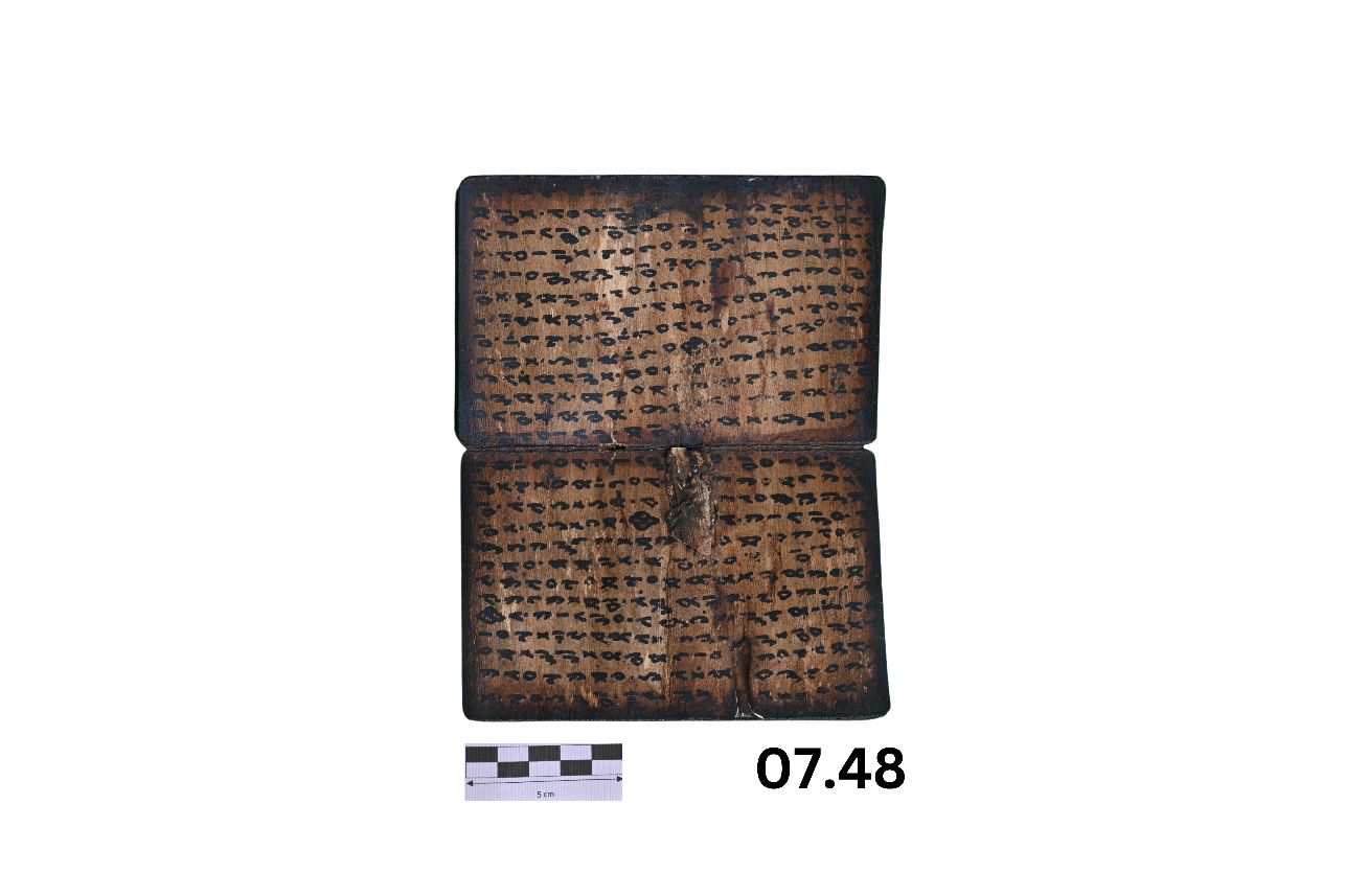 Pakaian dengan rumbai-rumbai susun empat, panjang sebatas lutut, warna hijau dan merah, rambut disanggul diberi hiasan ikat kepala yang ditempeli bulu, memakai kalung dan anting mote membawa tongkat di tangan kanan, tangan kiri memegang tameng, tanpa alas kaki, boneka dari Fiber.