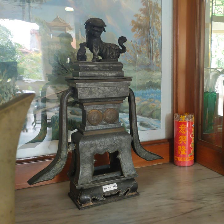 Nyolo atau wadah abu dupa, dengan ukiran flora di setiap permukaannya