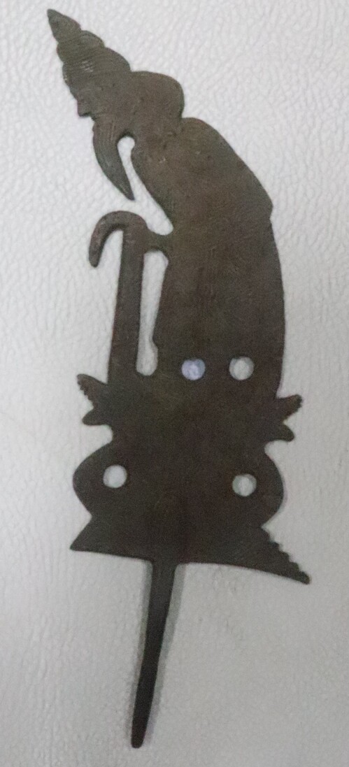 Bahan terbuat dari kuningan dengan warna kuning. Benda ini berbentuk bulat tinggi, dengan bagian muka mulut membuka lebar, leher berbentuk bulat tinggi dan bagian tengah terdapat motif dan melingkar. Badan membentuk bulat menggelembung pada bagian tengah terdapat motif dan melingkar, terdapat kaki berbentuk bulat cekung melebar yang berfungsi sebagai penyangga bagian atas. Benda ini biasanya digunakan sebagai salah satu perlengkapan menginang yaitu sebagai tempat membuang/menampung air ludah atau tempat membuang sampah kotoran saat menginang. Benda ini juga berfungsi sebaai wadah tempat membuat janur hiasan.