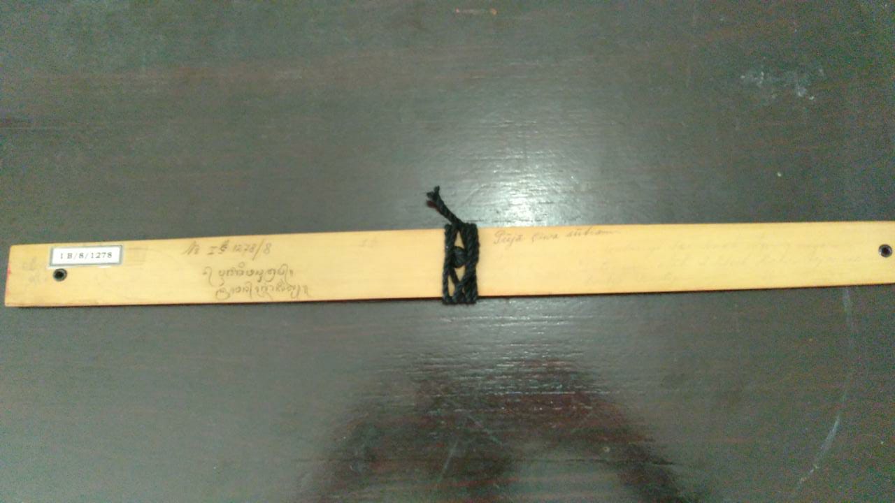 Bahan terbuat dari bambu dan kayu dengan warna hitam dan coklat. Benda ini terbagi atas dua bagian berbentuk seorang laki-laki yang sedang duduk (bertapa) dan terlilit oleh seekor ular. Bagian bawah berbentuk bulat tinggi dari bambu merupakan penyangga/kaki dari patung di atas. Bagian atas bambu dililit/dianyam dengan rotan. Benda ini berasal dari Palangka Raya yang digunakan oleh Suku Dayak Ngaju untuk mengusir roh-roh yang mengganggu.