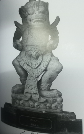 Patung menempati sisi utara bangunan, tepatnya pada Kori Agung I. Patung dibuat dengan material batu padas Bali warna natural unpolished, dengan dimensi panjang 40 centimeter, lebar 40 centimeter dan tinggi 110 centimeter. Patung ditempatkan secara built-in pada titik penempatan yang telah dibuatkan lubang dalam struktur arsitektur. Gaya rupa patung menggunakan gaya seni Bali kontemporer dengan teknik pahat.