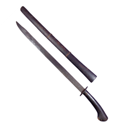 "Pedang ini memiliki bilah yang lurus terbuat dari besi yang lentur. Pada kedua sisi bilah diukir simbol VOC dan huruf ""D"" (inisial darai kota Delft, satu dari enam kota VOC di Belanda). Gagangnya dari kayu yang dilingkari kawat pada seluruh bagian gagang. Pengaman gagang berbentuk ""crossguard"" tersambung dengan knuckleguard (pelindung genggaman). Semua polos tanpa dekorasi. Tidak ada sarung Nomor inventaris KGB adalah 8483 (dicat pada gagang). Didalam katalog inventaris KGB pedang ini disebut ""rappier"" (pedang untuk anggar), tanpa keterangan lain. "