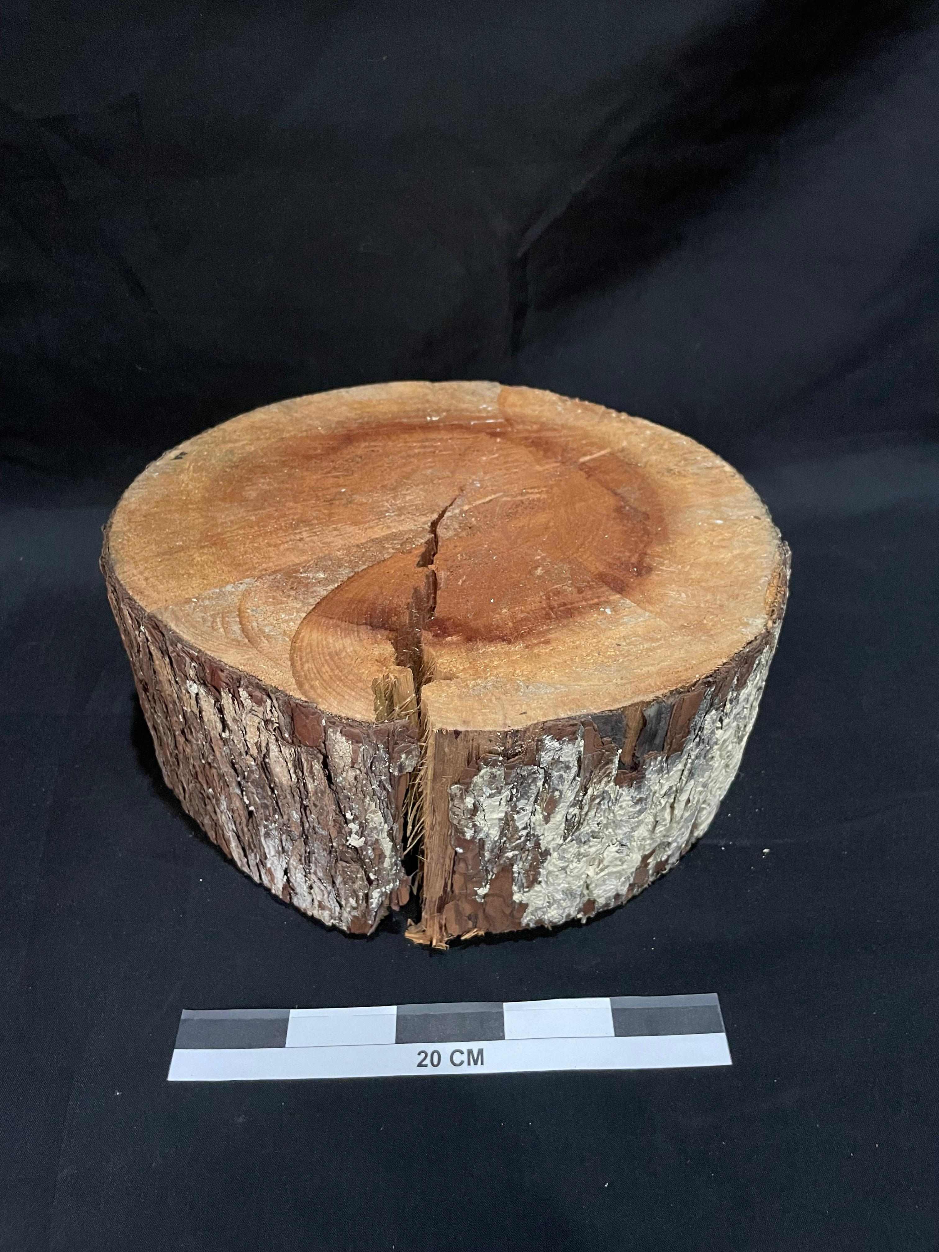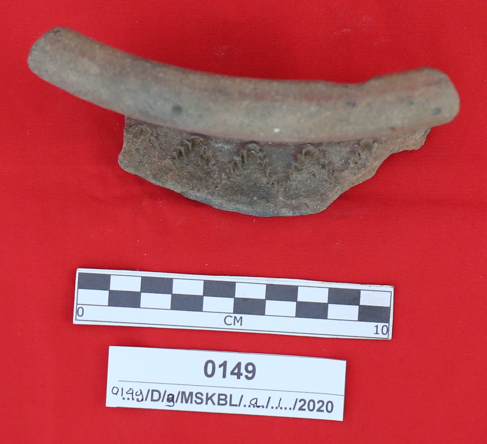 Terbuat dari kuningan, berituk bulat tinggi, bibir membalik ke luar. Mempunyai kaki bentuk bulat melebar ke bawah dengan hiasan garis-garis melingkar. Pada dinding badan berkerawang dengan hiasan motif swastika dan daun.