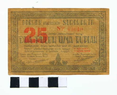 berbentuk bola dengan diametr 2,5 cm berat 0,095 kg, permukaan kasar , berbahan besi logam berwarna coklat keabu-abuan, dinuat dengan tehnik cetak