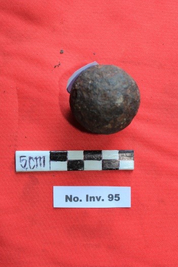 Terbuat dari bahan logam/besi, berbentuk bulat, berwarna coklat tua, dan pada bagian tengah terdapat lubang. Peluru meriam kuno tersebut dibuat dengan teknik cetak. Berfungsi sebagai peluru yang bertujuan untuk mendobrak dan menghancurkan musuh. Peluru tersebut digunakan pada saat perang Makassar yang terjadi pada tahun 1666-1667, 1668-1669.