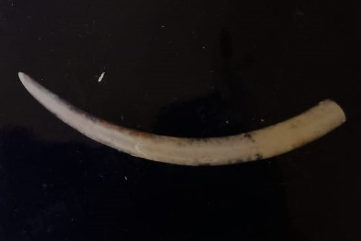 Berbentuk bulat, leher pendek, mulut kecil dan berkaki, terbuat dari bahan dengan glasir putih kebiruan. Pada leher dan bahu terdapat lingkaran biskuit, dibawahnya ada motif meander. Badan dipenuhi motif rangkaian bunga rotan, dedaunan dan tulisan Cina serta ban-ban hiasan. Keseluruhan motif berwarna biru. Cina, Dinasti Ching abad 19-20