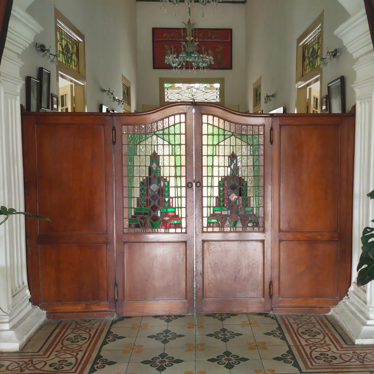 Pintu koboi tipe kupu tarung dengan kaca patri