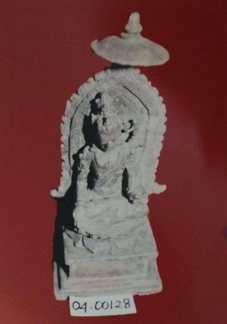 Terbuat dari tanah liat, bentuk bulat cekung berkaki, glasir warna abu-abu. Bibir rata sedikit sompel, dasar bawah rata tanpa glasir. Pada saat ditemukan seluruh permukaan tertutup karang laut. Cina, Dinasti Sung abad 10-13 M.