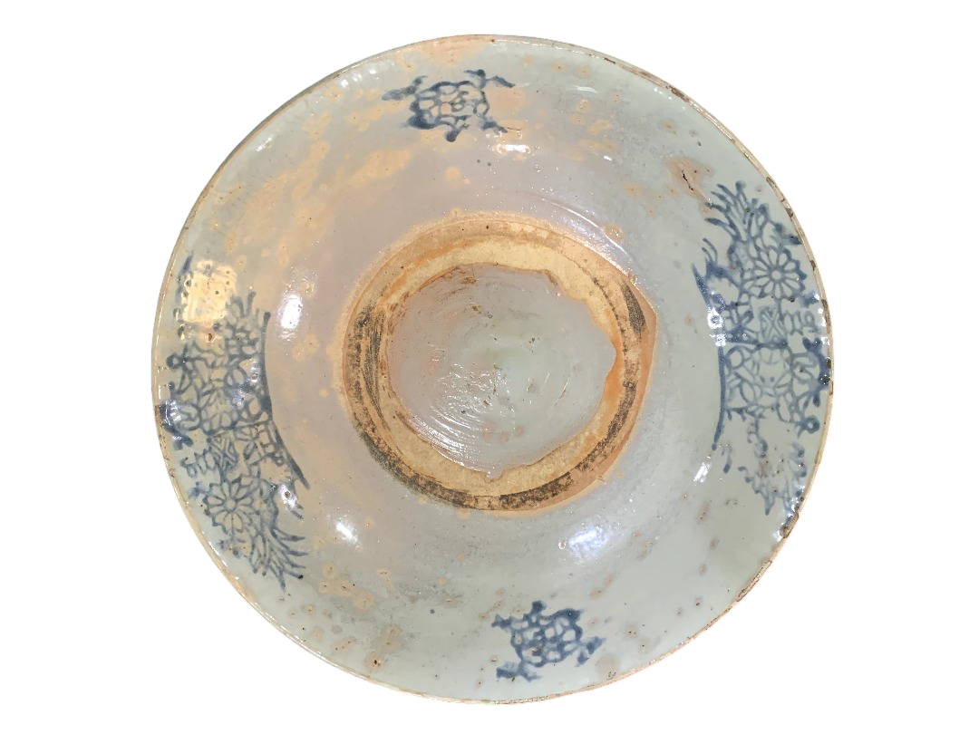 Piring ini terbuat dari tanah liat kaolin yang dilapisi oleh porselin sebagai pengilat yang berwarna biru muda. Piring ini berbentuk bulat cekung dan lingkaran kaki rendah. dibagian tengah adanya sisa sisa pembakaran pada keramik. Pada bagian dalam piring terdapat 4 (empat) buah hiasan goresan-goresan bermotifkan flora sedangkan pada bagian luarnya terdapat 3 (tiga) buah hiasan goresan-goresan yang bermotif fauna. Fungsi piring ini sebagai wadah. umumnya piring ini untuk tepat meletakkan makanan yang akan dimakan yang dipergunakan dalam upacara adat seperti perkawinan dan lain-lain