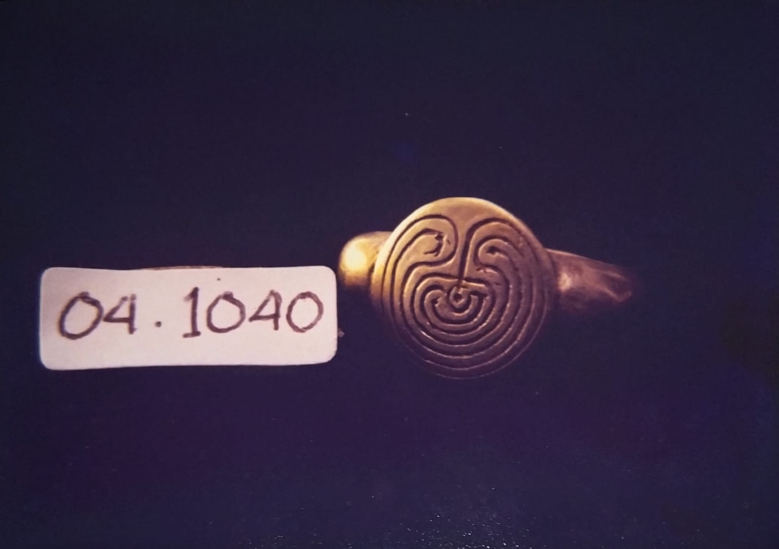 Benda ini terbuat dari kaolin. Berbentuk bundar, lingkaran kaki tipis dan rendah. Pada bagian dalam bermotif hias naga (dragoon). Pada bagian tepi bermotif hias sulur dan bunga peony, pada bagian ini juga ada motif pita dan bunga. Bunga peony (Peony scroll) adalah raja dari segala bunga dan dianggap sebagai lambang dari kekayaan, kejayaan, kasih sayang, cinta serta hal hal yang indah. Benda ini buatan pada masa dinasti Ming Tengah.