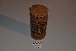 Benda ini terbuat dari bahan porselin dan berwarna putih abu-abu. Bentuknya bundar, kaki tebal. Berglasir retak-retak dan berwarna kuning coklat. Pada bagian dinding dalam terdapat garis lingkaran. Pada bagian dasar atas tedapat pusaran. Keadaan baik. Koleksi ini merupakan peninggalan dari Kesultanan Kutai.