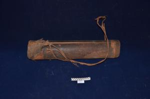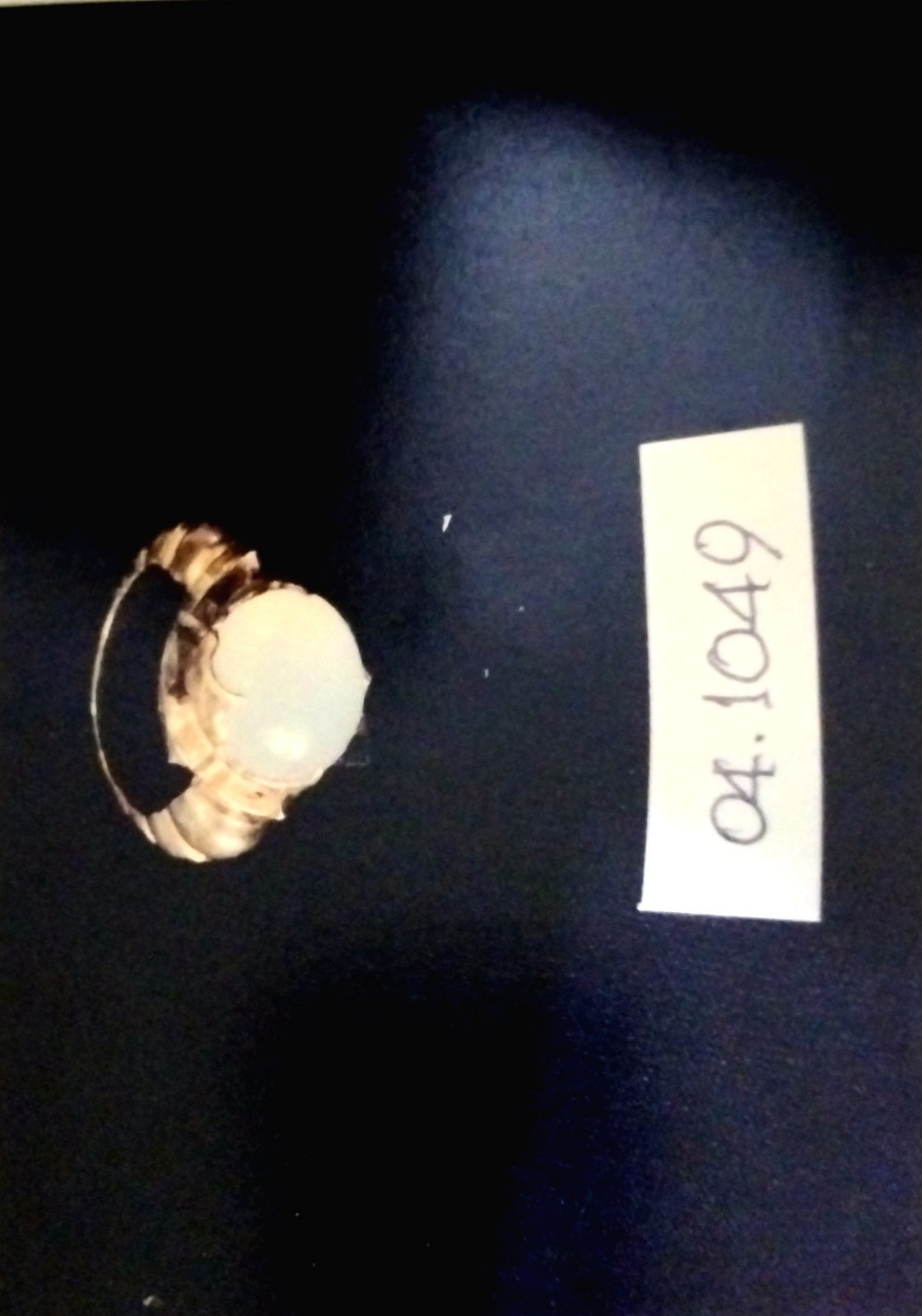 Terbuat dari tanah liat, bentuk bulat cekung berkaki, glasir warna abu-abu. Bibir rata membalik ke luar, dasar bawah rata tanpa glasir. Pada saat ditemukan sebagian permukaan dipenuhi karang laut. Cina, Dinasti Sung abad 10-13 M.