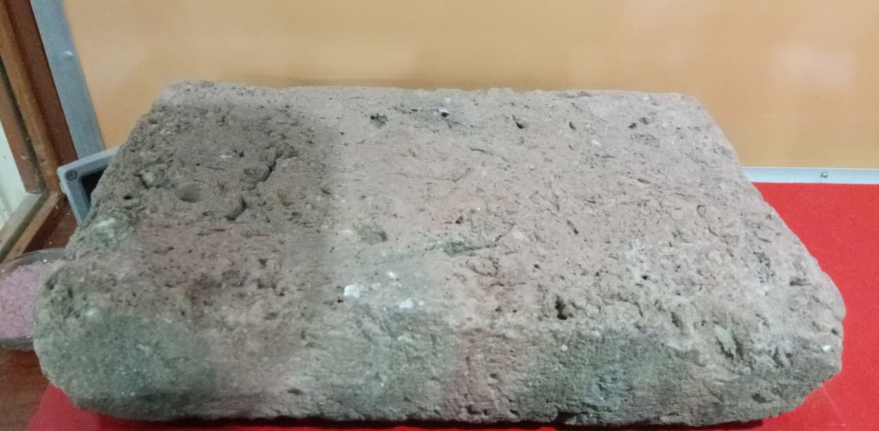 Bentuk bulat cekung berkaki rendah, terbuat dari tanah liat, retak seribu. Bibir rata tanpa glasir dan sedikit sompel, pada bagian tengah atas tidak diglasir sedagkan pada dinding bagian atas dan bawah berglasir warna abu-abu. Pada saat ditemukan selurh permukaan atas dan bawah tertutup karang laut. Cina, Dinasti Sung abad 10-13 M.