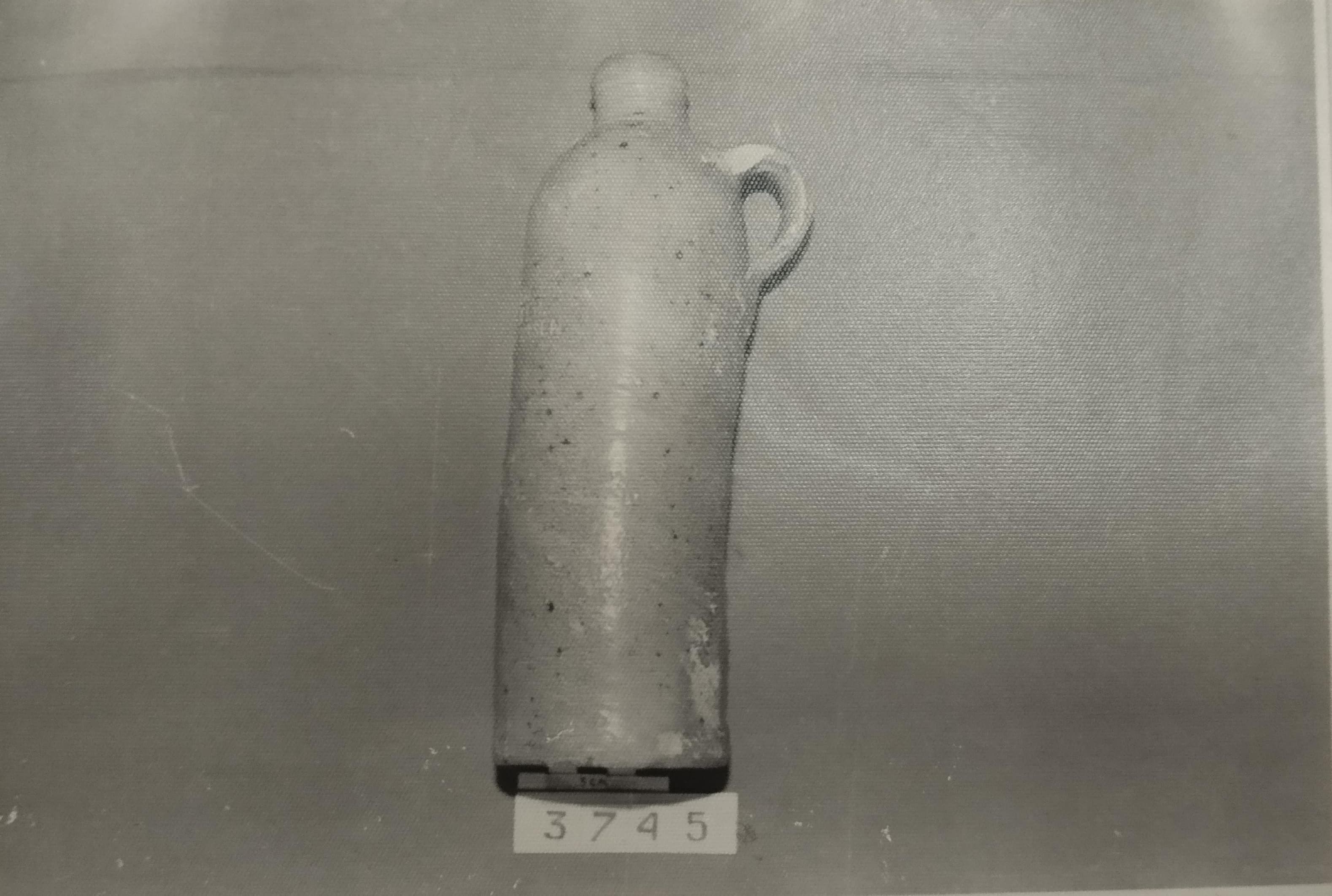 Terbuat dari tanah liat, bentuk bulat cekung kecil , berglasir warna abu-abu. Bibir rata tanpa glasir, dinding bagian atas dan bawah polos, dasar bawah rata tanpa glasir. Pada permukaan atas dan bawah seluruhnya tertutup karang laut pada saat ditemukan. Cina., Dinasti Sung abad 10-13 M.