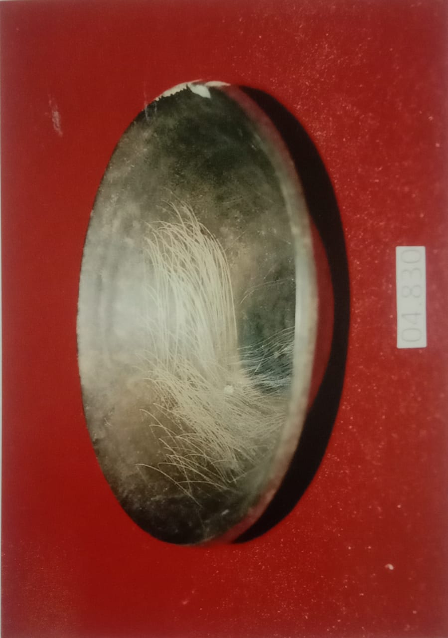 Pirng keramik asal Cina bentuk bundar digelasur warna abu-abu pecah seribu, kaki rendah. Pada dinding bagian dalam terdapat hiasan Pada pantat terdapat hiasan sekuntum bunga . Fungsinya dipergunakan sebagai wadah.