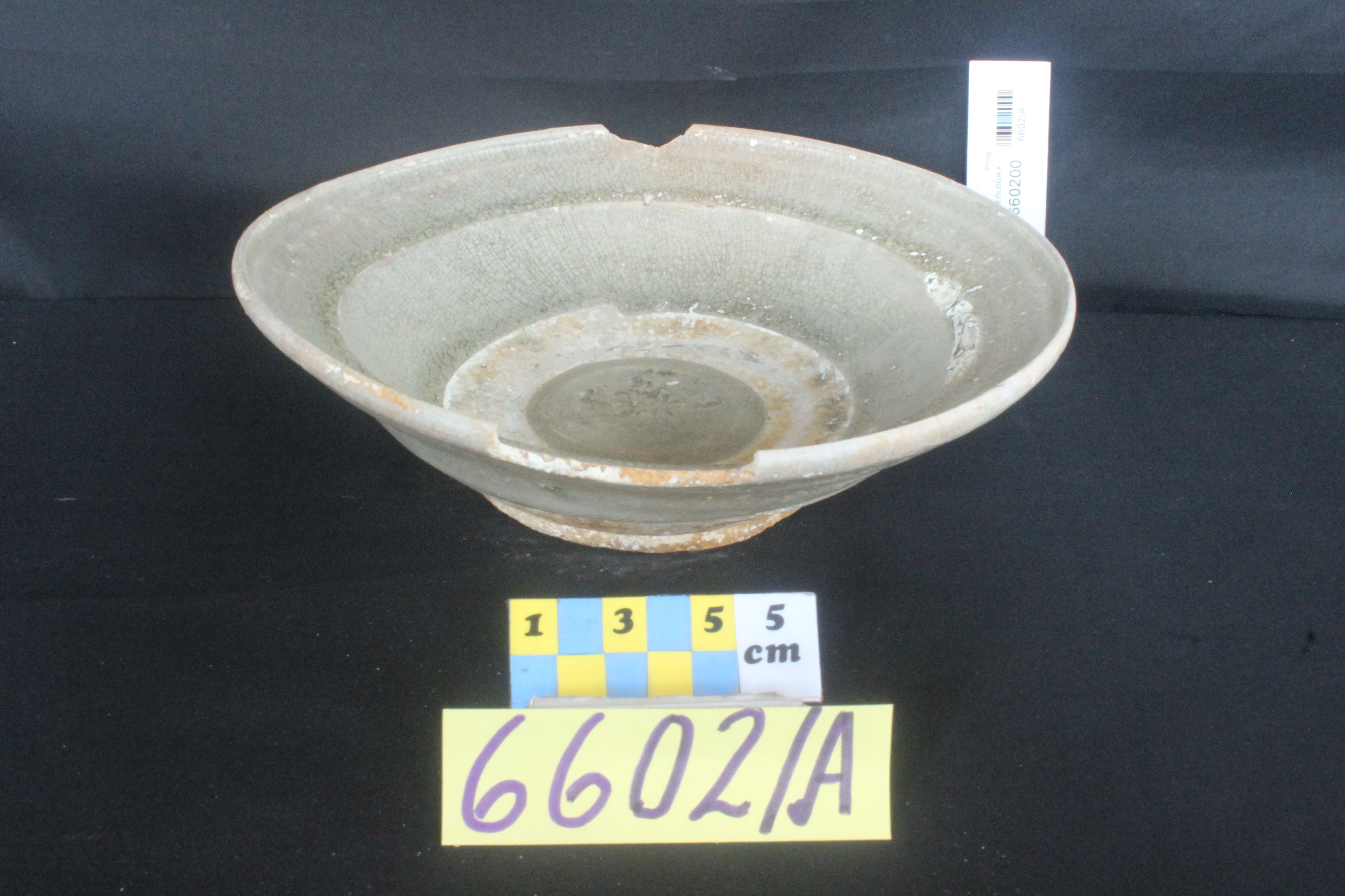 bulat, badan cekung dasar datar, berkaki