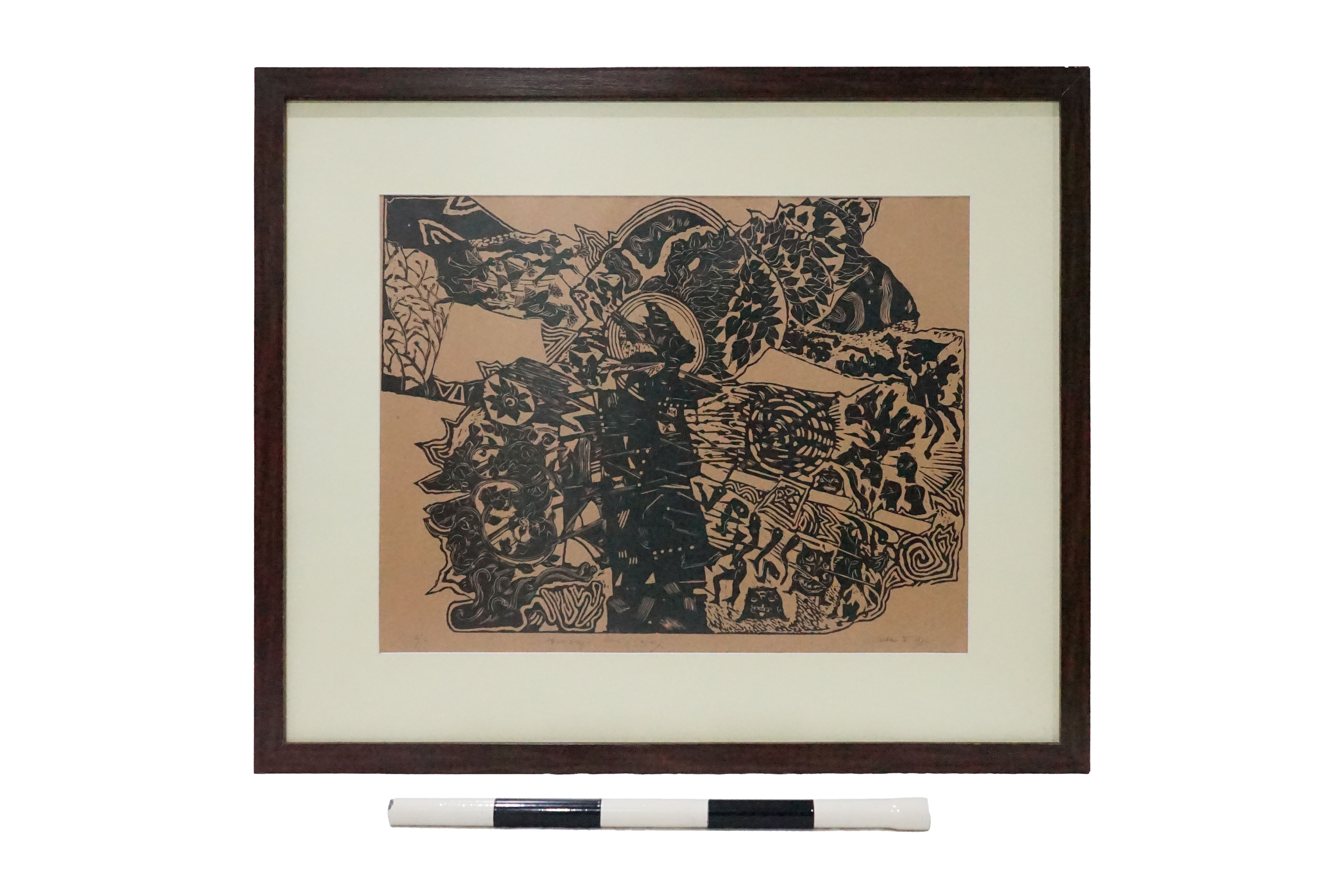 Bahan: Porselen Bentuk: Piring agak cekung, bagian bibir ada bagian yang melebar, bagian yang melebar ada cekungan. Glasir: Putih menyeluruh. Motif: Bagian alas bermotif klenteng di pinggir sungai, ada jembatan, perahu, pagar, dan burung. Bagian alas atas bermotif geometris, bagian bibir hiasan flora dan geometris warna hiasan biru. Fungsi: Praktis sebagai tempat makan.