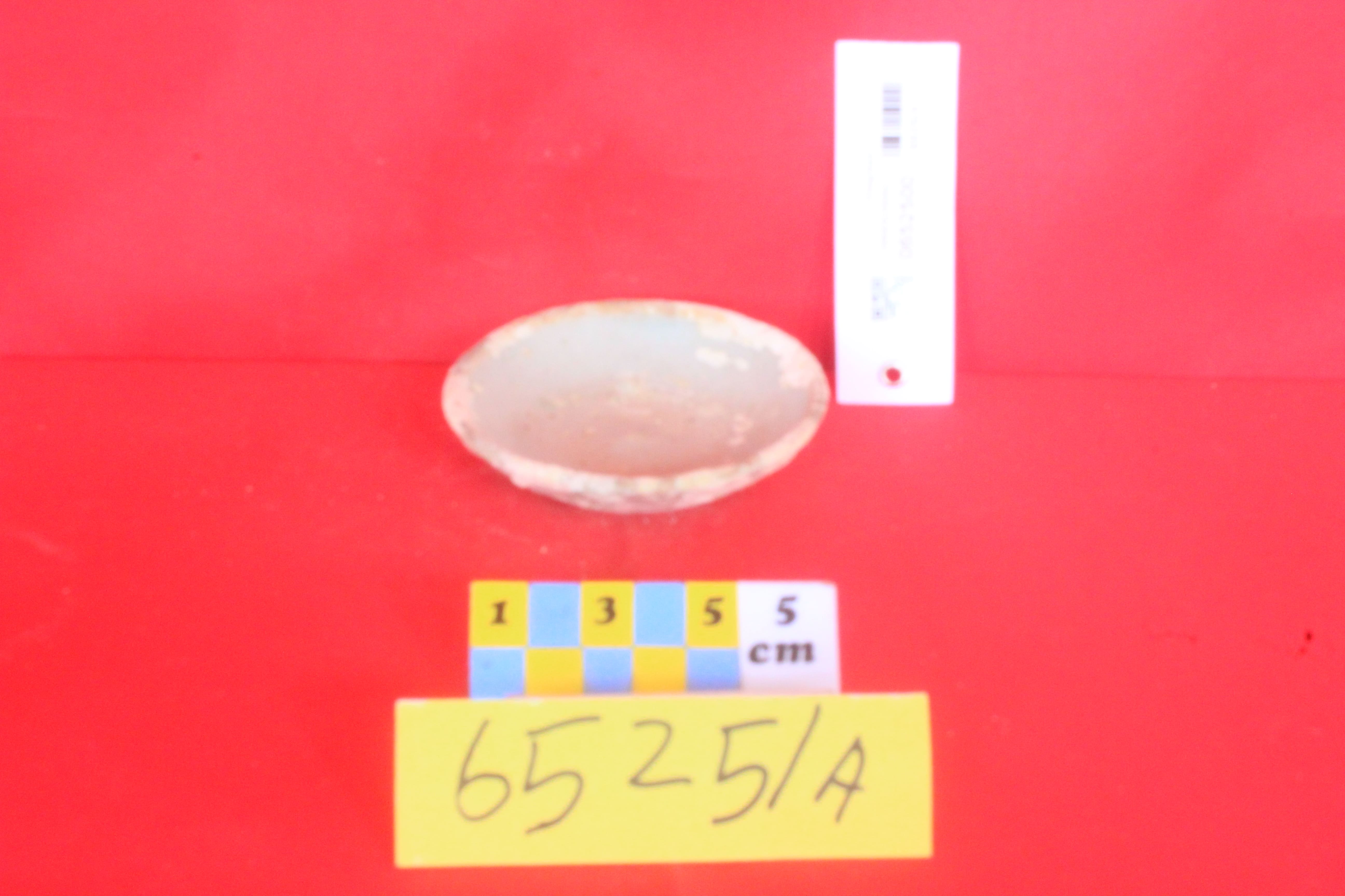 Terbuat dari tanah liat yang mengandung batuan halus, bentuk bulat cekung kecil dengan glasir warna coklat. Bibir tebal membalik ke luar, kaki rendah dan dasar rata tanpa glasir. Hampir seluruh glasir terkelupas dan ada karang laut yang menempel.