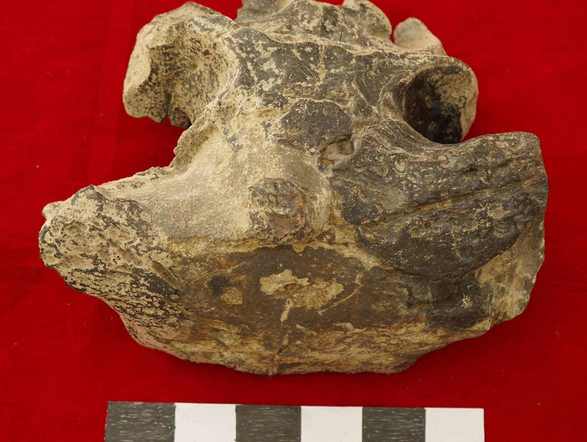 Bentuk pipih panjang, meruncing dan tajam ke ujung. Pegangan bergaya kamau,kondisi rusak (pecah).
