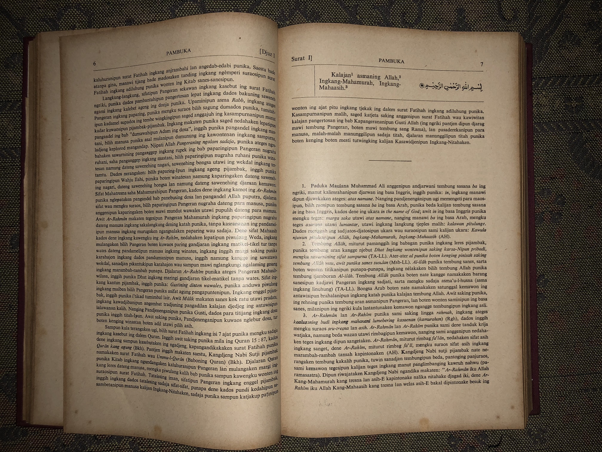 Mushaf ini merupakan mushaf modern, penulisan teksnya telah menggunakan teknologi modern. Penerjemah & Penulis Mushaf ini adalah Maulvi Muhammad Ali, MA, LLB dan Muh. Mufti Sharif. Diterbitkan oleh Penerbit Gita Karya Jakarta dan Gerakan Ahmadiyah Yogyakarta pada tahun 1958 untuk Jilid-1, Tahun 1963 untuk Jilid-2 dan Tahun 1966 untuk Jilid-3. Mushaf ini tidak memiliki ornamen, namun covernya berwarna Merah (Jilid-1), sedangkan Jilid-2 dan 3 berwarna Putih. Teks tulisan menggunakan bahasa Arab dan terjemah/Tafsir bahasa Jawa, berjumlah 749 (1) halaman, 750-1431 (jilid-2) dan 1432-1776 (jilid-3).