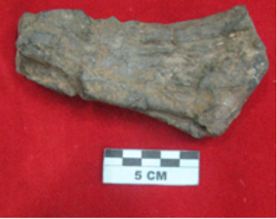 Koleksi merupakan fragmen dari gigi ikan pari yang mengkonsrevasi bagian akar gigi dan juga mahkota gigi. Bagian akar gigi berwarna coklat tua dengan ketebalan kurang lebih 2 mm. Bagian laminae masih dapat diamati namun kondisinya sudah patah sebagian. Mahkota gigi berwarna hitam dengan permukaan yang halus dan memiliki indikasi sedikit cembung. Mahkota gigi memiliki ketebalan kurang lebih 3.6 mm.