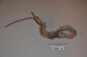Gagang terbuat dari tanduk dilapisi emas yang berukir hiasan motif tumbuh-tumbuhan. Sarung dari kayu, bagian pangkal terdapat hiasan motif tumbuh-tumbuhan, serta ikat dari perak. Bilah terbuat dari besi. Rencong merupakan senjata tusuk khas Aceh. Gagang 9 cm, bilajh 27 cm, sarung 29 cm.