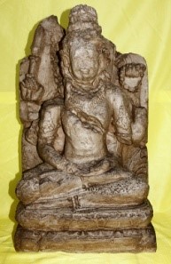 Arca ini merupakan replika. Arca dalam posisi duduk diatas padmasanaganda dengan sikap kaki silatasana. Digambarkan mempunyai empat buah tangan tetapi tiga diantaranya patah. Kedua tangan bagian depan dalam sikap dhyanamudra, sedang kedua tangan bagian belakang masing-masing memegang tasbih dan atribut lain. Mengenakan jubah yang pada bagian belakang diikat gaspela berbentuk pita.perhiasan terdiri dari drai gelang tangan, gelang kaki, kelat bahu,kalung luasan telinga serta mahkota. pda bagian belakang terdapat prabhamandala dan semacam stella berbentuk akolade.