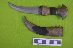 Terbuat dari bahan kain, manik-manik dan kerang laut dengan teknik tenun songket dan sulaman aplikasi. Rok dengan warna dasar hitam, pada bagian atas dan bawah dilapisi kain merah, begitu juga pada bagian depan dilapisi dengan kain merah dan kuning. Pada bagian tengah rok diberi jalinan sulaman aplikasi manik-manik motif kait (pilin berganda) dan diapit oleh motif bunga dari kerang laut. Digunakan sebagai pelengkap pakaian pada upacara adat seperi gawai, pesta perkawinan yang dipakai oleh wanita pada suku Dayak Iban dan Taman.