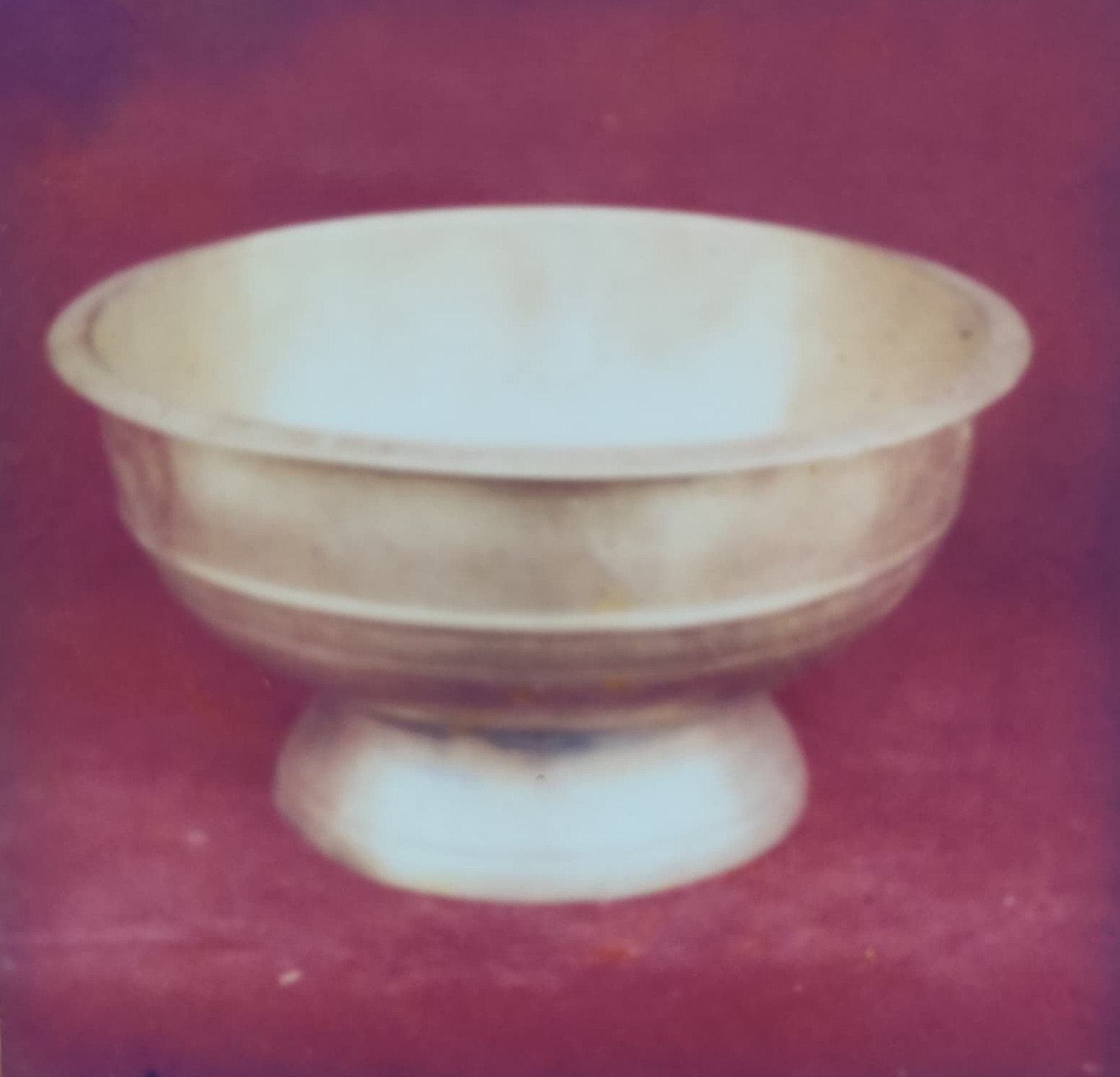 Sangku polos terbuat dari kuningan dengan warna kuning. Benda ini berbentuk bulat seperti mangkok dengan bagian dalamnya berbentuk cekung yang berfungsi sebagai wadah, bagian tengah badan terdapat ban melingkar. Bagian bawah berfungsi sebagai kaki yang berbentuk bulat tinggi dan membuka lebar. Benda ini biasanya digunakan oleh masyarakat Dayak di Kalimantan Tengah sebagai wadah tempat membawa/menaruh benda-benda persyaratan pada upacara-panganten mandai maupun wadah sesajen pada upacara-upacara adat.