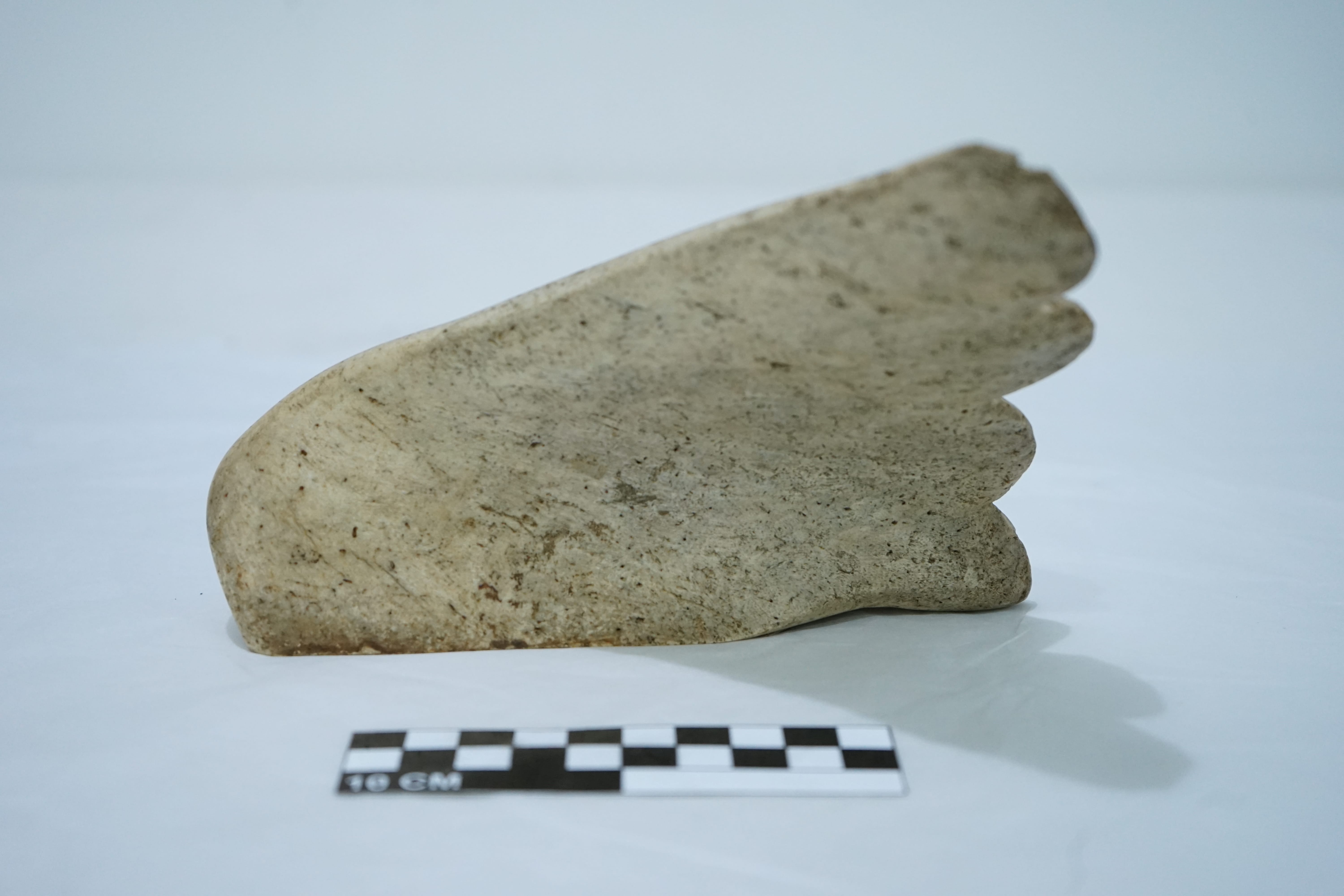Karya patung ini terbuat dari material batu berwarna kekuningan dengan bentuk sebuah sayap. Terdapat empat kelopak pada sayap tersebut.
