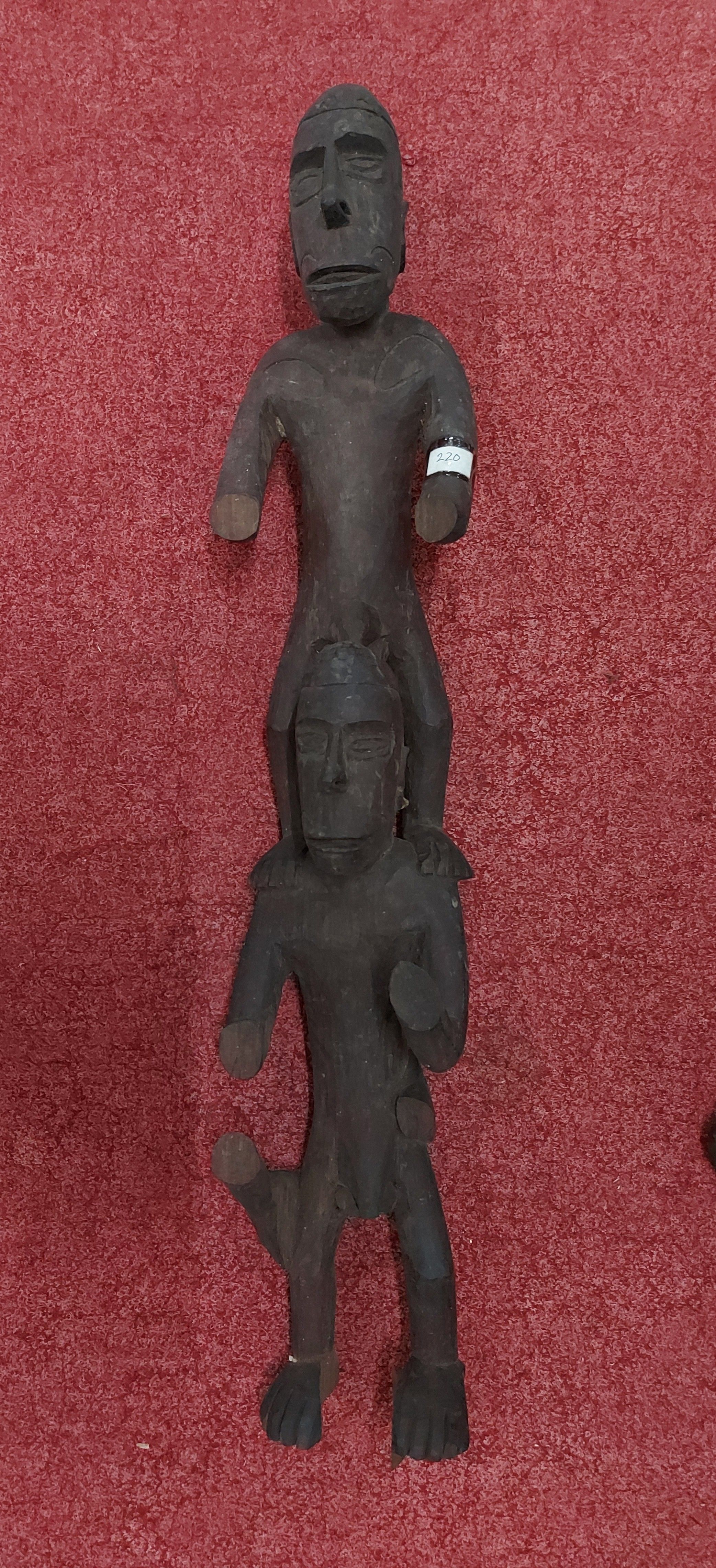 Terbuat dari benang katun, kedua ujung berumbai. Bidang kain dipenuhi motif pilin (kait) membentuk pohon hayat warna merah, hitam dan kuning. Pada pinggirnya bergaris-garis horizontalDigunakan sebagai pelengkap pakaian adat oleh suku Dayak Desa di Kabupaten Sintang.