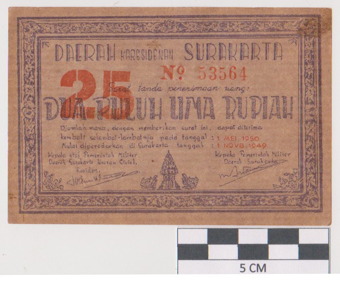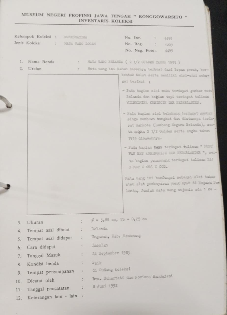 Koleksi berasal dari Hibah Bank Indonesia tahun 2016 dan merupakan benda yang terkena Erupsi Merapi 2010