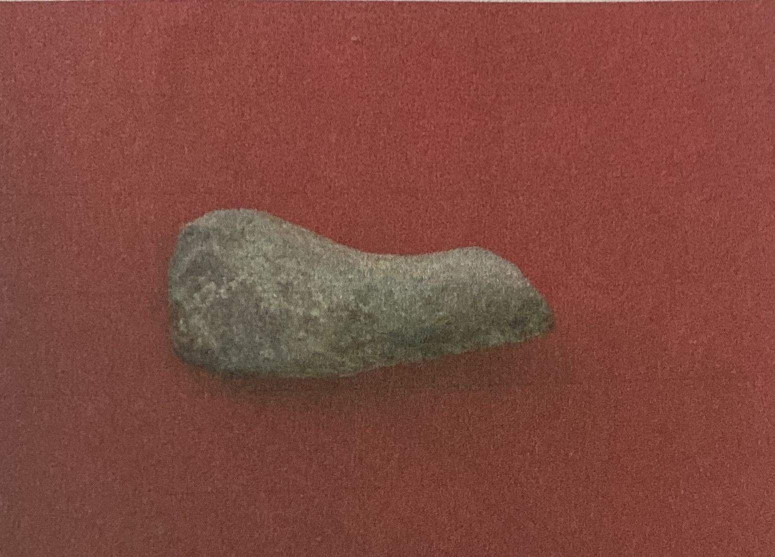Koleksi merupakan batu tatal berbahan koral silika. Permukaannya didominasi warna coklat kekuningan dengan corak bulat-bulat yang berasal dari bahan batunya. Secara umum, berbentuk segitiga tidak beraturan. Terdapat jejak pemangkasan pada permukaan koleksi.