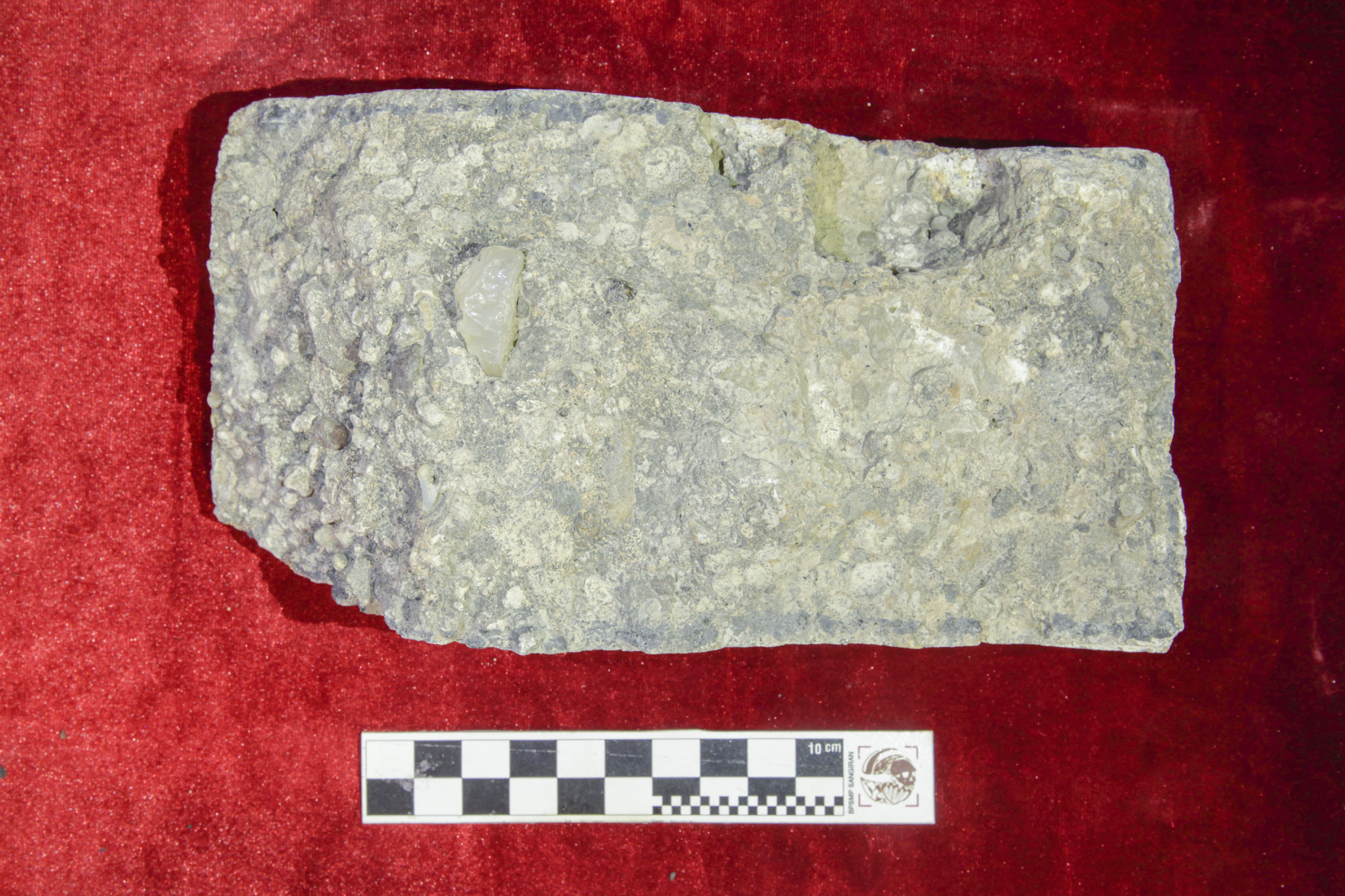 Koleksi Contoh Lapisan Tanah Grenzbank tersebut memiliki dimensi ukuran panjang 18 cm, lebar 9,5 cm, tinggi 6 cm, dan berat 1,885kg. Berwarna abu-abu muda dan memiliki tekstur yang kasar dan sangat keras