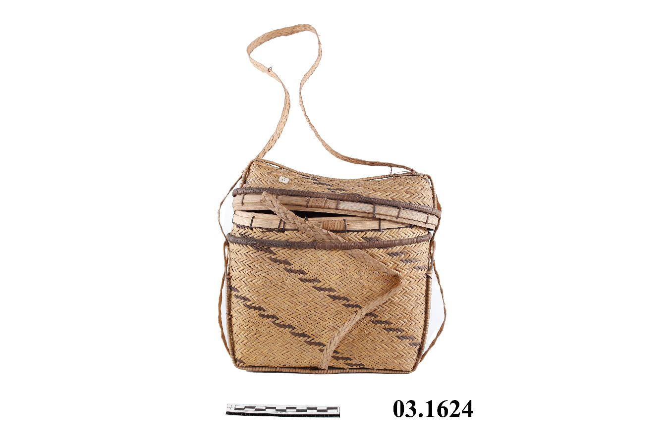 Terbuat dari kayu, panjang, berlubang bagian tengah sepanjang kayu