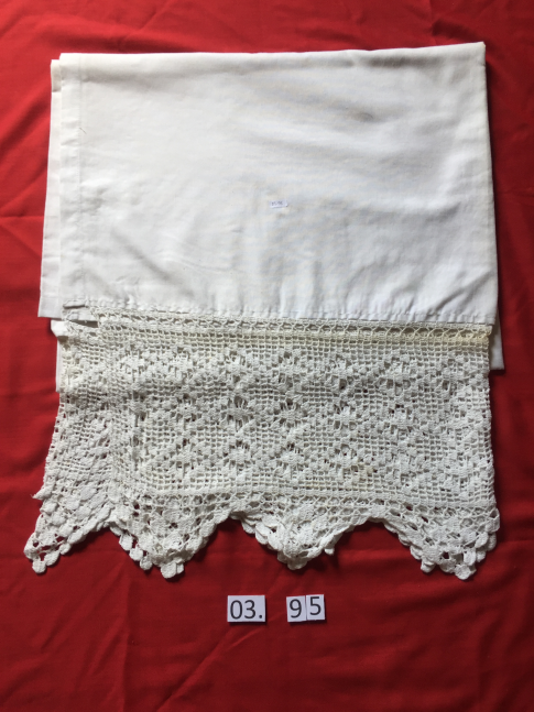 "Tanpa Judul Anonim Seni Fotografi 5/SF/A 22 x 33,5 cm Karya ini merupakan hasil foto yang menampilkan sebuah jendela yang berada di balik gorden vitrase bermotif floral. Pengambilan foto ini dilakukan dengan cara, fotografer memotret sebuah jendela di balik gorden vitrase. Sehingga motif atau ragam hias dari gorden terlihat lebih detail dibanding jendela. Foto tersebut menampakkan cahaya dari luar ruangan yang menembus jendela sehingga paparan cahaya pada jendela patry dengan warna kuning, hijau, merah, biru muda, dan biru tua menembus sampai ke gorden dengan menampilkan motif floral pada gorden vitrase tampak berwarna-warni. Foto ini dibingkai dengan bingkai kayu pada bagian luarnya dan dibingkai dengan kertas foto yang berwarna putih pada bagian dalamnya."