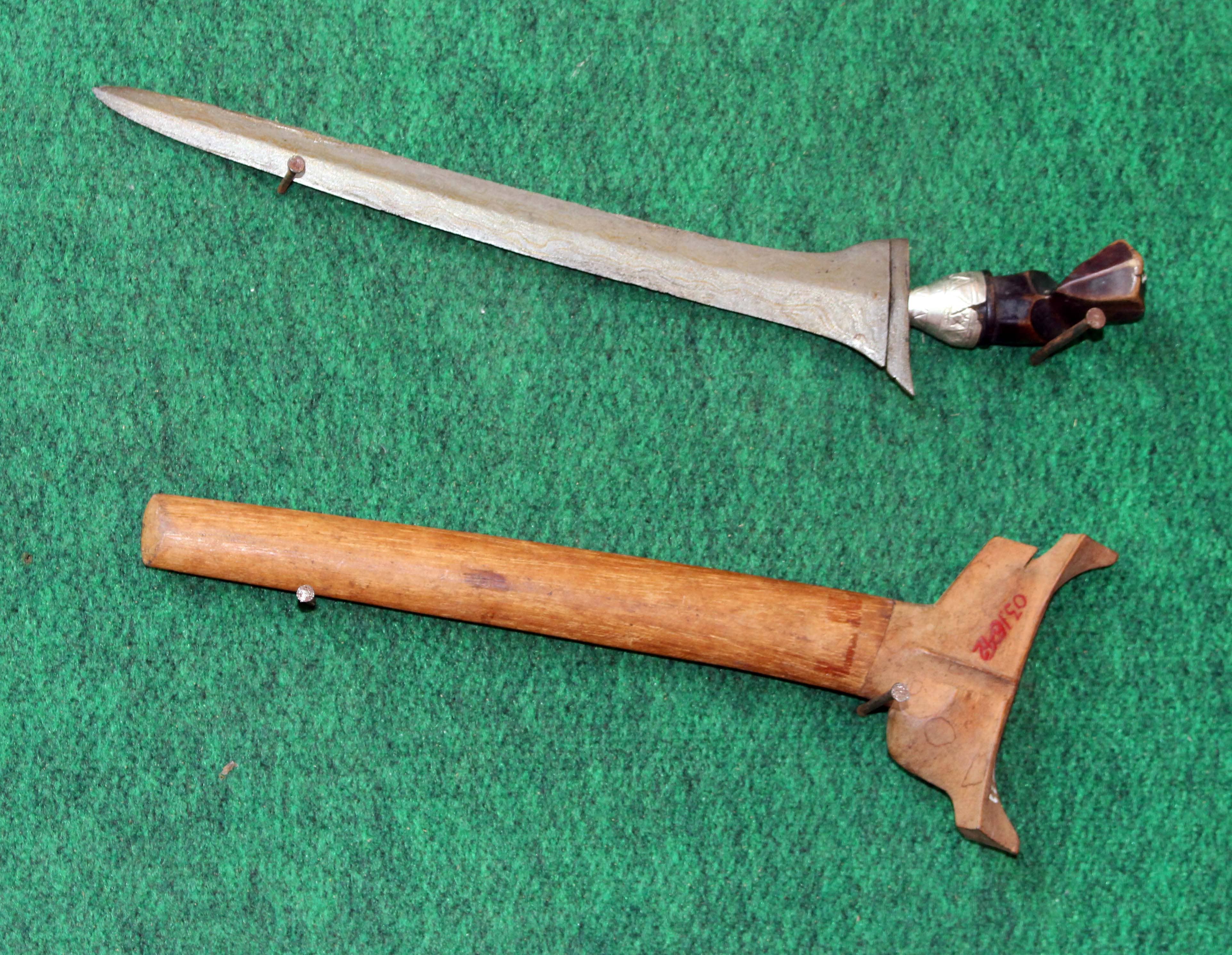 Pada bagian mata tantajuk lancip, melebar pada bagian perut dan mengerut ke bagian bawah dengan pegangan lengkung. Tantajuk digunakan sebagai alat pelubang tanah untuk menanam anak padi pada sawah dataran rendah.