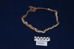 Bentuk tampuk sisi kiri dan kanan bulat telur mengecil arah ke atas. Seluruh sisi pinggir dijepit dengan belahan rotan dan diikat dengan tali dari rautan rotan. Bagian tengah atas menggunakan retsleting. Kedua sisi bagian bibir tas terdapat masing-masing dua bulatan kecil dan pilinan tali rautan rotan dan tali gantungan dari pilinan rautan rotan. Merupakan kelengkapan berpakaian wanita, sebagai tas bepergian untuk berbagai keperluan rias wanita.