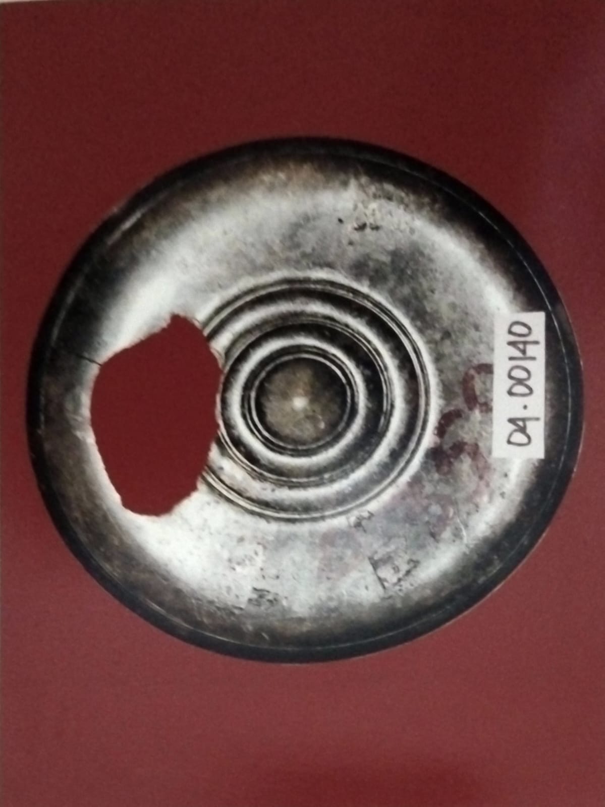 Benda berbentuk tabung berwarna kuning keemasan terbuat dari kuningan yang dilengkapi dengan penutup. Terdapat motif flora dan geometris, pada penutup terdapat pegangan yang berbentuk bunga dan diatasnya berbentuk kerucut. Koleksi ini digunakan sebagai wadah gelas.