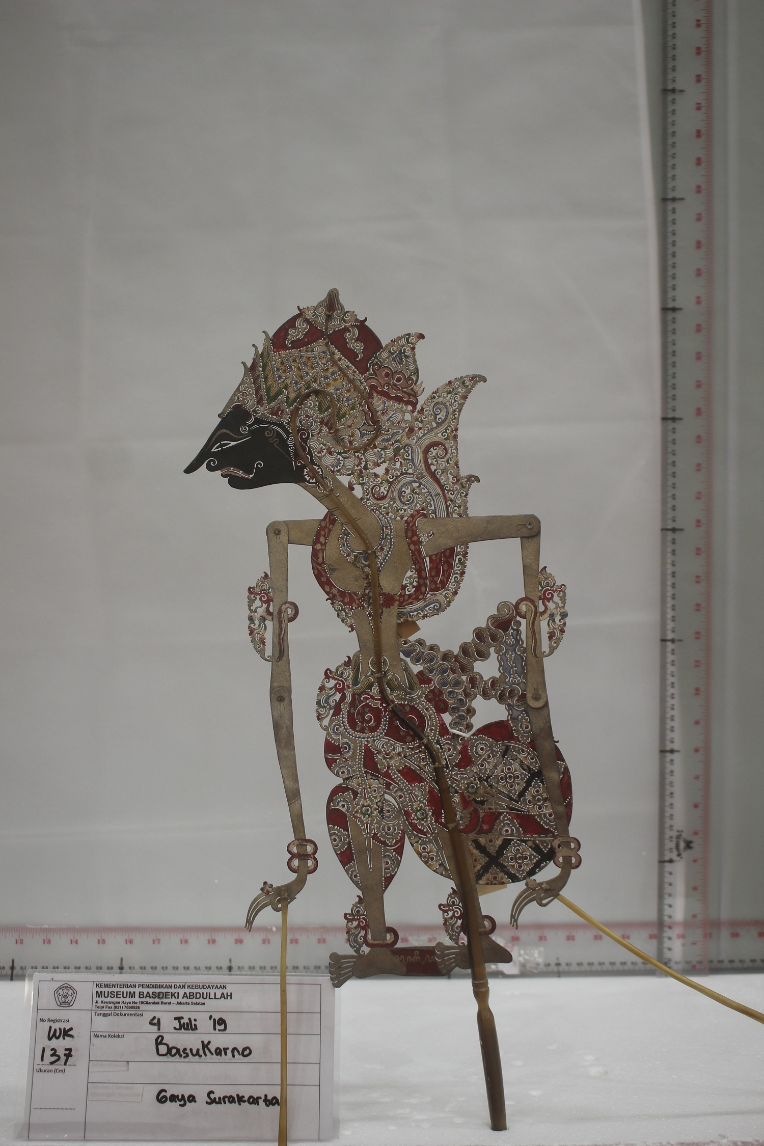 Benda berbentuk tabung berwarna kuning keemasan terbuat dari kuningan yang dilengkapi dengan penutup. Terdapat motif flora dan geometris, pada penutup terdapat pegangan yang berbentuk bunga dan diatasnya berbentuk kerucut. Koleksi ini digunakan sebagai wadah gelas.