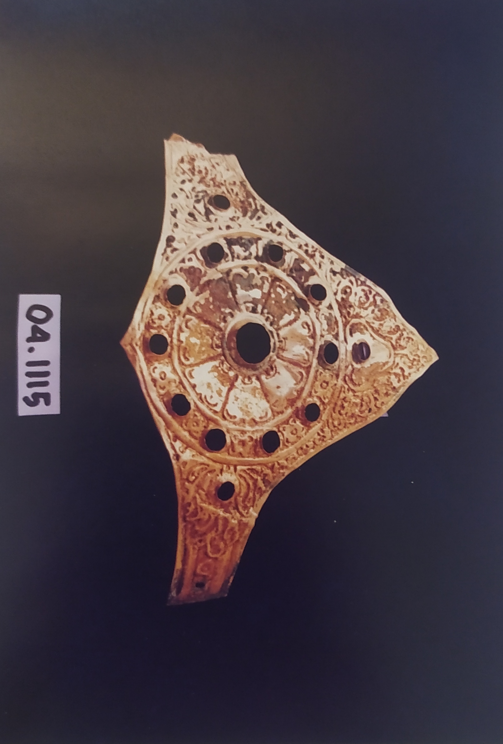 Terbuat dari tanah kaolin, warna dasar putih, bentuk bulat tinggi, mempunyai tutup dilengkapi dengan pegangan dan sebuah lubang kecil. Pada badan terdapat pegangan berbentuk daun telinga, mempunyai ceret bentuk leher bebek, dibawah leher terdapat motif kuntum bunga timbul. Badan terdapat motif bunga warna coklat dan biru muda. Dasar bawah rata dengan pinggir awan disekelilingi.