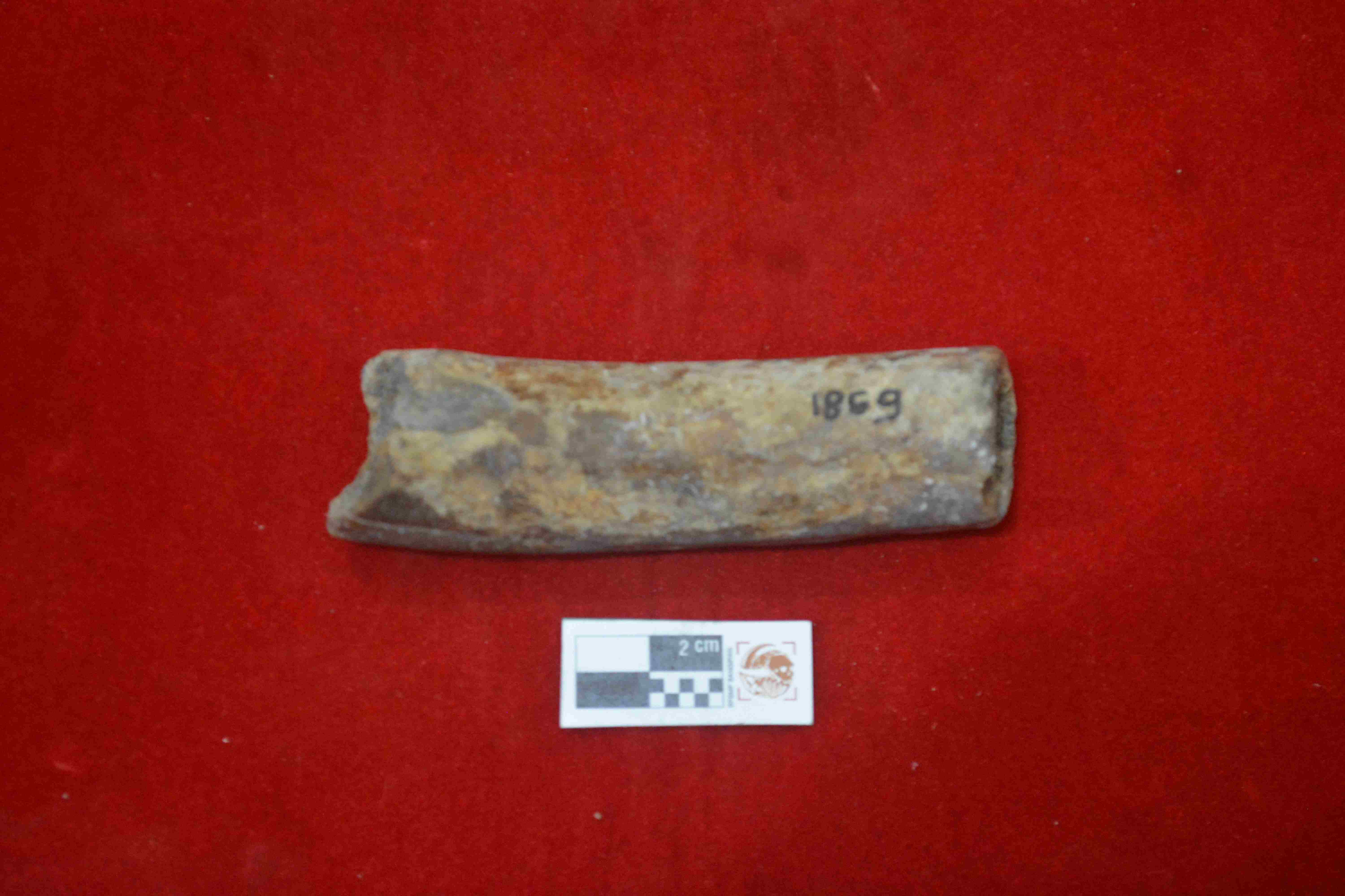 Warna perak, bentuk agak lonjong melengkung, kanan kiri ada lubang untuk menggantungkan benda ini, ada tulisan DULDJIMAN.