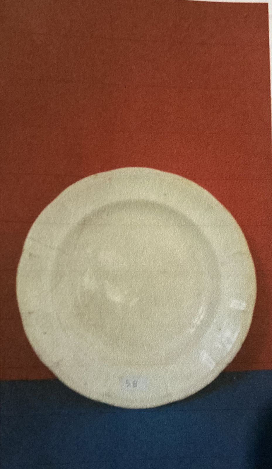 Terbuat dari campuran tanah liat dan kaolin, bentuk bulat Lonjong ramping, leher tinggi, bibir tebal membalik keluar. Sekeliling pinggir bibir bercorak pinggir awan, glasir warna putih hingga badan bawah. Pada bahu terdapat 8 buah vertikal beralur berujung bekas tekanan jempol, dibawahnya terdapat motif lambang-lambang Budha seperti pedang, bunga, surat, pita dan lain-lain. Badan dihiasi motif tanaman bunga diselingi dengan motif naga berwarna hijau, biru dan coklat dibatasi dengan dua buah ban melingkar bentuk pilinan tali warna biru. Bagian bawah dihiasi tumbuhan air warna hitam. Dasar cekung tanpa glasir.